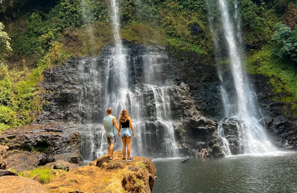 Juste à côté se trouve Tad Fane, la plus grande cascade du plateau. Elle est célèbre pour ses deux chutes jumelles qui plongent avec force dans une jungle luxuriante. Ici, nous avons tenté une expérience un peu folle : la tyrolienne au-dessus de la cascade. Le frisson était bien présent, mais la vue… absolument incroyable. Survoler la canopée, voir les chutes d’eau défiler sous nos pieds, ressentir cette montée d’adrénaline : une expérience inoubliable qui vient parfaitement clôturer cette boucle mémorable.