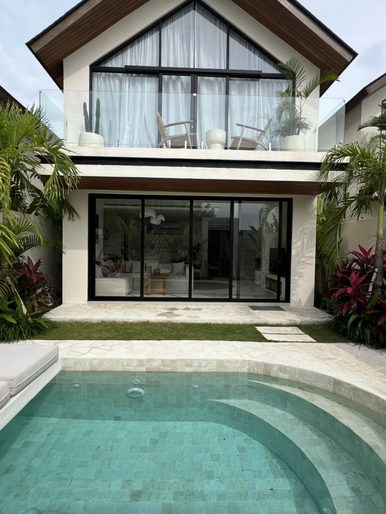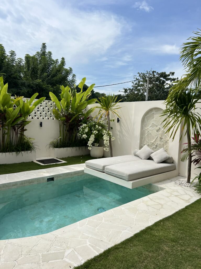 On a trouvé une villa avec piscine privée, 3 chambres et un grand espace extérieur parfait pour profiter des soirées après la plage. Le rapport qualité-prix était vraiment raisonnable, surtout en partageant les frais à plusieurs. À Bali, louer une villa peut revenir à peine plus cher qu’un hôtel classique si vous êtes en groupe.