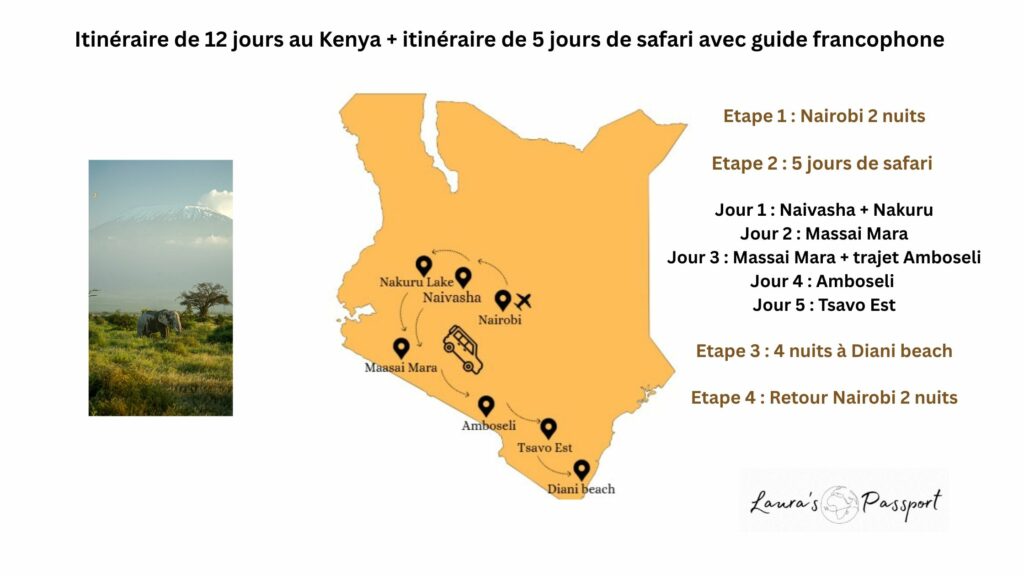 Voici le déroulé de mon safari au Kenya, jour par jour avec mon guide francophone, pour te donner une idée concrète de ce que ce type de voyage implique.